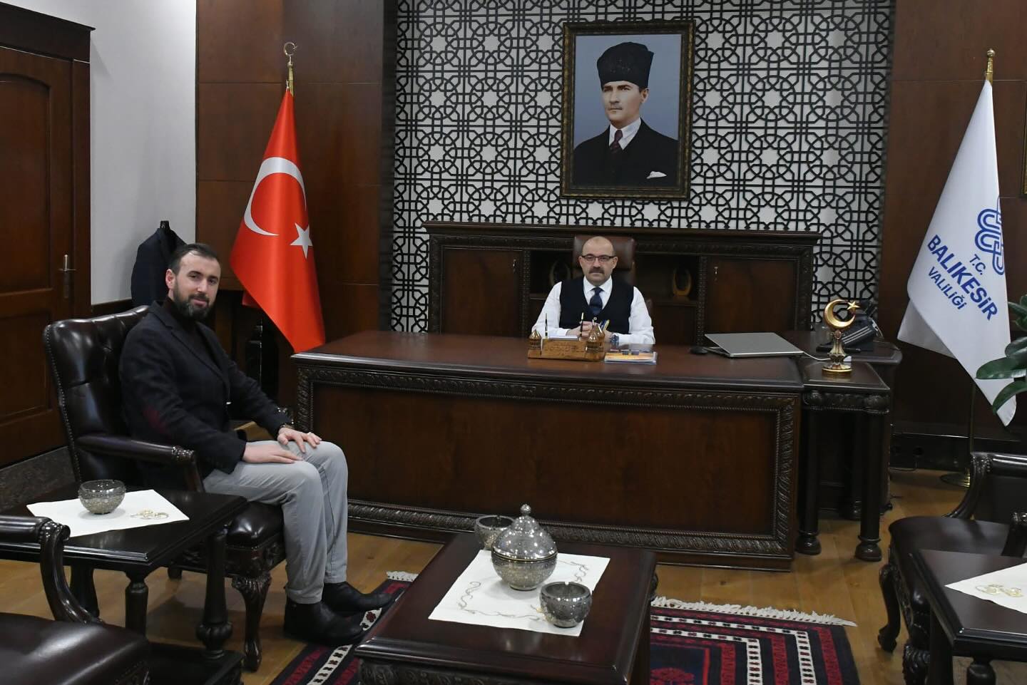 Fatih Çelik’ten Resmi Ziyaret İlahi sanatçısı Fatih Çelik, Balıkesir Valisi İsmail Ustaoğlu’nu makamında ziyaret etti. Ziyaret sırasında sanatçı, valiye sanatı ve çalışmaları hakkında deta...