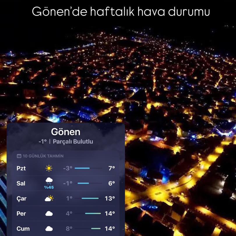 Gönen’de Hafta Hava Durumu: Soğuk Başlangıç, Ilıman Devam Gönen’de yeni hafta sert soğuklarla başlıyor, ancak ilerleyen günlerde sıcaklık artışı bekleniyor. Pazartesi Günü Sert Soğuklar Ge...