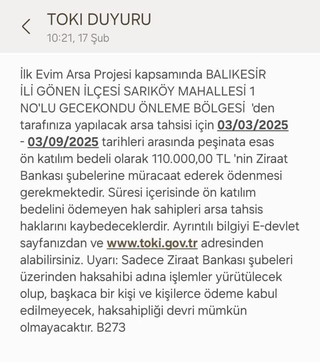 Gönen’de Yeni Arsa Tahsisleri Başladı TOKİ, İlk Evim Arsa Projesi kapsamında Balıkesir Gönen’de arsa tahsisi yapılacağını duyurdu. Proje, Sarıköy Mahallesi 1 No’lu Gecekondu Önleme B...