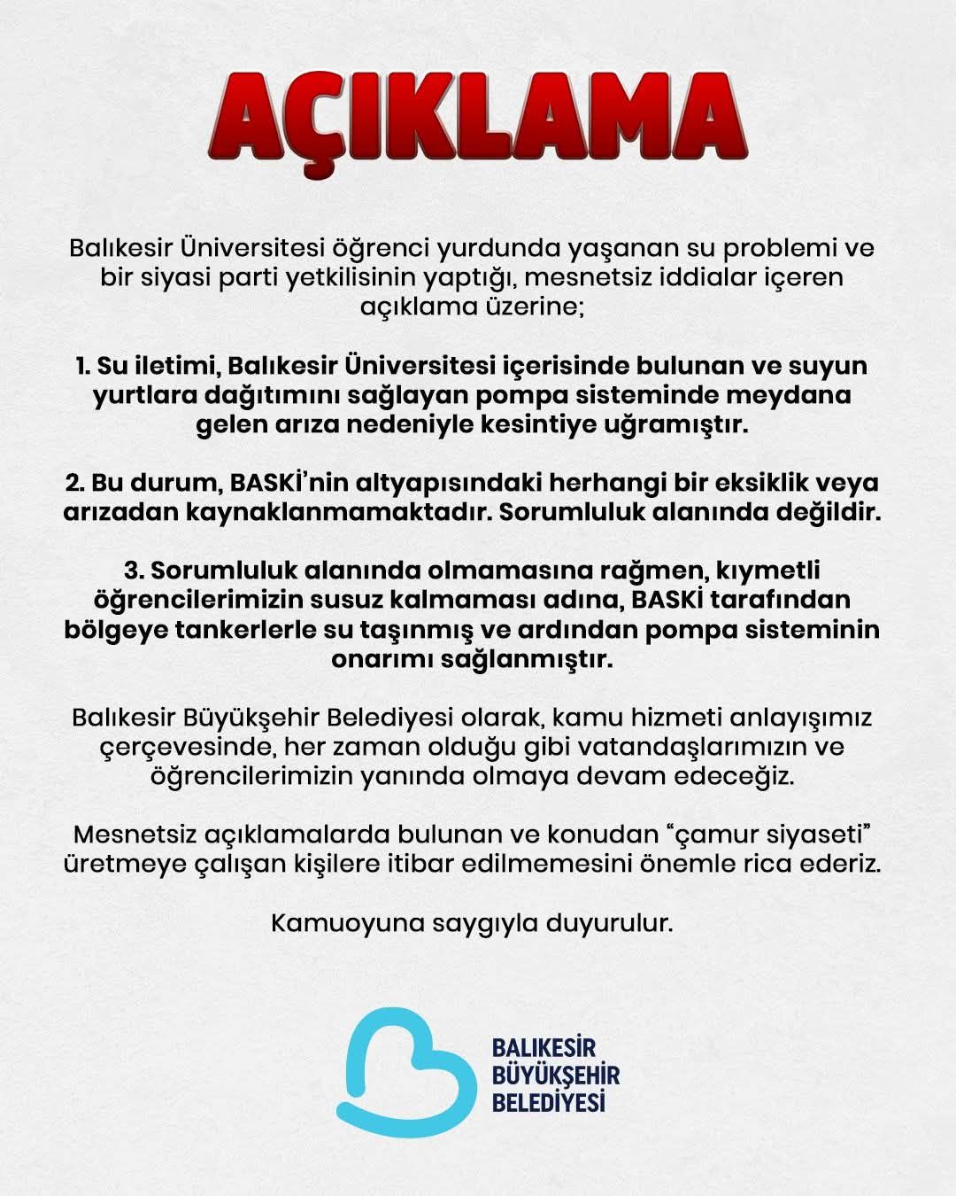 Balıkesir Üniversitesi’nde Su Kesintisi Balıkesir Üniversitesi öğrenci yurdunda yaşanan su kesintisi, yurtların su dağıtımını sağlayan pompa sistemindeki bir arıza nedeniyle ortaya çıktı. Bu arı...