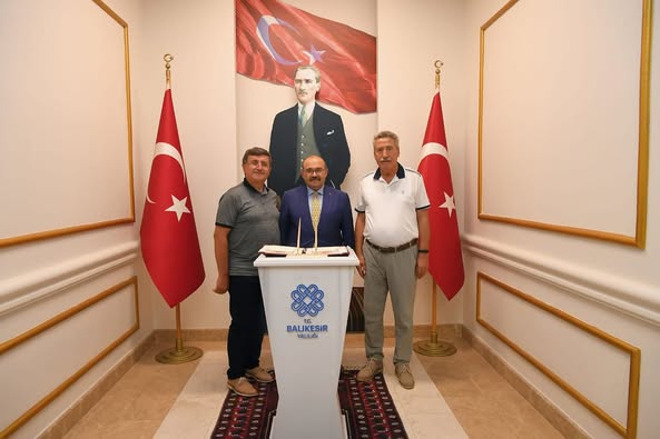 Balıkesir’de Ziyaret Balıkesir Valisi İsmail Ustaoğlu, dün emekli vali Mustafa Cahit Kıraç ve Merkez Valisi Abdil Celil Öz tarafından ziyaret edildi. Ziyarette, Ustaoğlu, Kıraç ve Öz’ü mak...