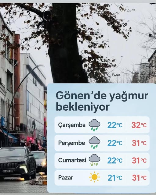 Gönen’de Hava Durumu: Yağmur ve Sıcaklık Uyarısı Meteoroloji Genel Müdürlüğü, Gönen‘de önümüzdeki günlerde yağışlı havanın etkili olacağını duyurdu. Özellikle Çarşamba, Perşembe ve Cumarte...